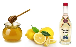Ieri am cautat pe internet “leacuri babesti” si mai peste tot am gasit cateva lucruri bune pentru asta si am decis sa fac un cocktail din toate: miere, lamaie si tuica! Desi suna bine va avertizez: gustul e oribil!